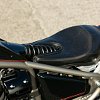 The Sureshot frame also incorporates a custom rear suspension system. The new setup utilizes a monoshock actuated by linkages attached to a chunky machined aluminum swingarm. While this type of suspension configuration is common on modern motorcycles, what stands out about this one is how the shock itself has been installed. Running from beneath the rear of the fuel tank and into the front of the seat, it's a bold statement that would undoubtedly make even the bravest of men a tad nervous.
