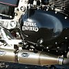 A crucial design element for these motorcycles was the fitment of the new bodywork. The Endurance-inspired fairings came in the form of a half-cowl with twin headlights, for added wind protection and improved visibility. Custom rear cowls convert the GTs into single-seaters. On one side of the tail sits a race-style plate, while on the other, a luggage rack and Malle Expedition pannier equipped with essential support supplies. Kellermann micro indicators retain functionality without detracting from the look. Complementing the new bodywork are clip-ons and adjustable rearsets from Enfield partner company Harris Performance.