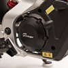 The CRF-E2’s swappable lithium ion battery provides about two hours of run time, and charges in four hours. A quick-charge system is available that cuts that time down to two and a half hours. Batteries weigh 13.1 pounds, and they carry a 12 month/3,000 mile warranty, as does the rest of the powertrain.