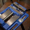 My second vise is actually a drill-press vise. If you have a good drill press, a vise for the table is essential. One of these days I’ll upgrade to a cross-slide vise so I can work a little quicker, but for the time being, the drill press vise is good enough. Having a vise on the drill press becomes more and more essential the bigger your drill press is. It not only steadies the workpiece for greater accuracy, but it also protects you (and the pretty bikes you may have parked nearby). If you want to visit the hospital or throw a scare into yourself, try to hold something in your hands when using a powerful drill press. There’s nothing like a valuable or heavy part being hurled at high speed across the shop to remind you you’re not being safe.