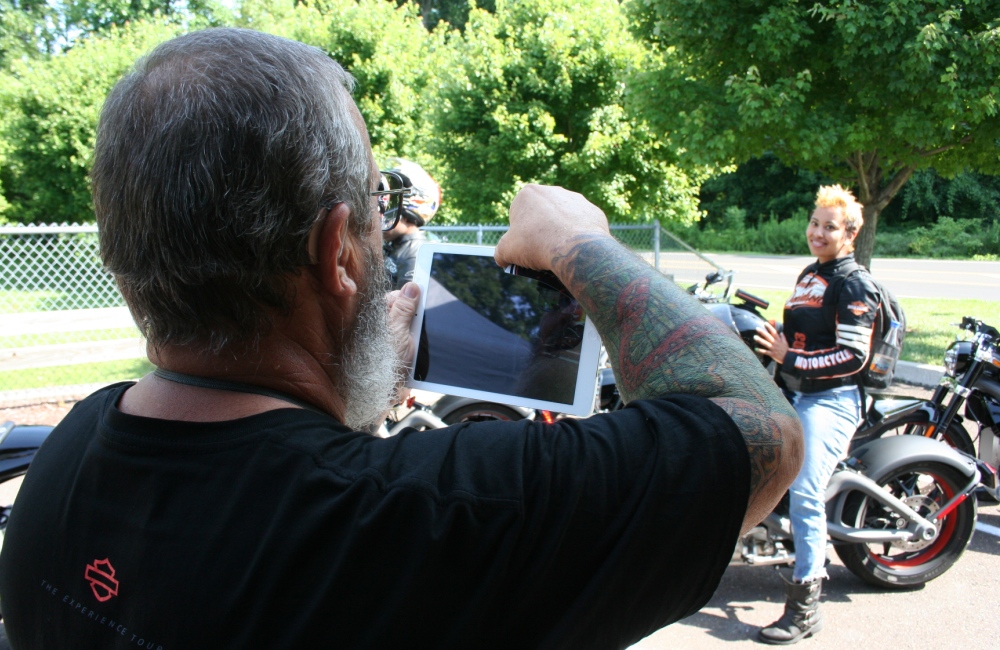 We snagged spots in the test-ride schedule for the Harley-Davidson LiveWire prototype electric motorcycle and went to Brian's Harley-Davidson in Langhorne, Penn., for our own LiveWire experience. Riders were required to watch a short video, were given some brief instructions and then sent off for a short, led ride. As soon as each group returned, a Harley employee snapped a photo of each rider and handed over a card with a code. That code let the rider instantly post a photo on social media, letting everyone know that he or she got to ride the most talked-about electric motorcycle yet.