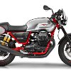 Like the Anniversario, the Racer is a limited edition of the V7 and it comes with various sporty upgrades and details, from the Ohlins shocks to the black spoked wheels with the red stickers and the red eagle emblem on the tank, all making reference to other Moto Guzzi sport models. Other features are the brushed aluminum number plate and the use of black anodized parts. The humped saddle appears to be for a rider only, but Moto Guzzi says it's approved for passenger use. Presumably by a hardy passenger and for short distances.