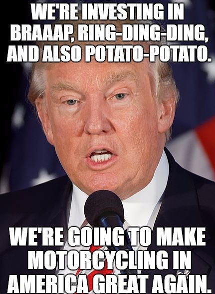 These are some of the loose ideas kicking around in my melon, but I’m not that creative. What do you guys think? What’s the cure for the post-recession doldrums? I think some practical solutions to common sticking points beat another Millennial moodboard sesh. One thing is certain: Something has to change if we’re going to Make Motorcycling Great Again, and we are responsible for making that happen. All of us.
