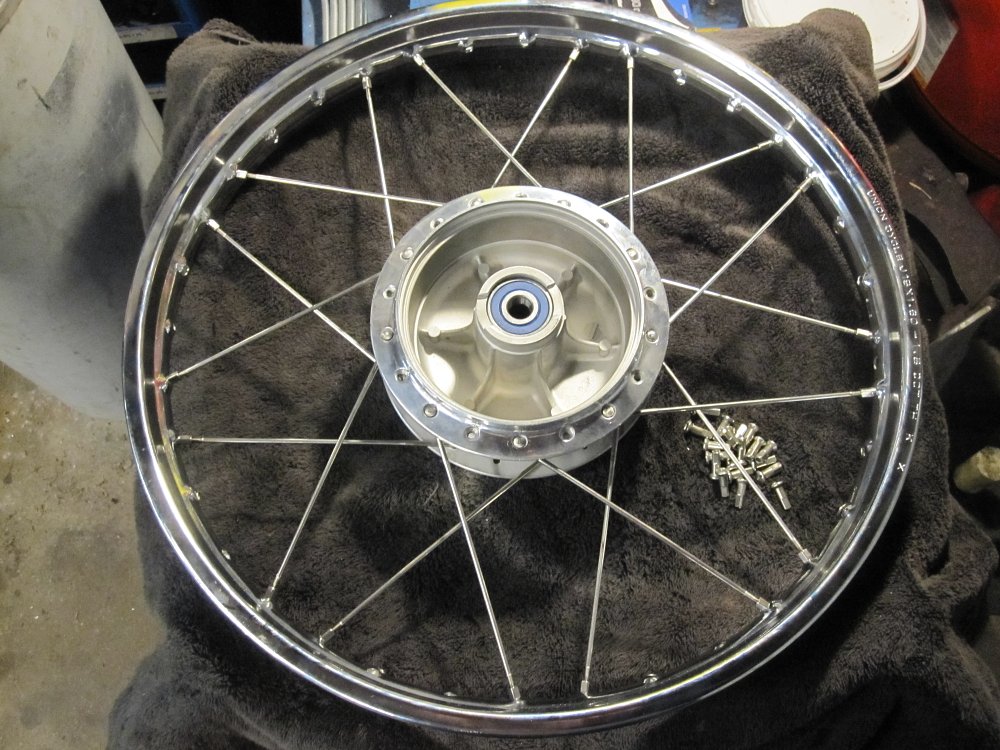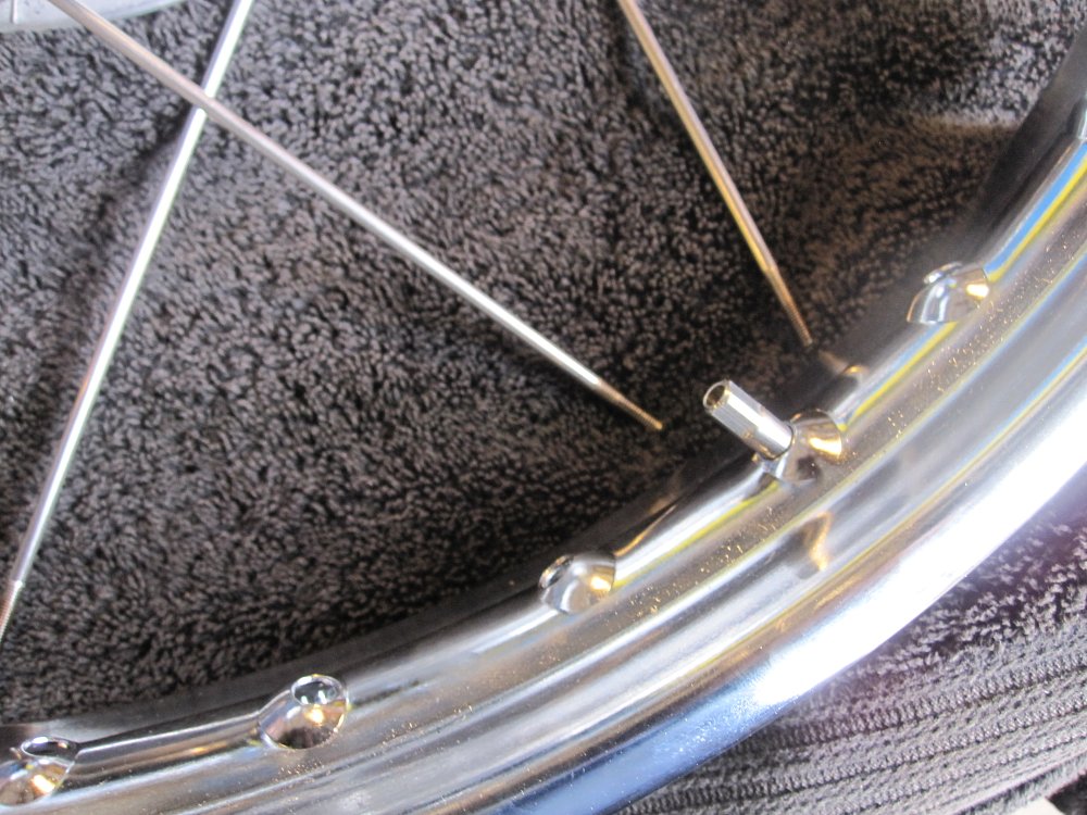 Be sure to grind down any spokes that may be poking through the nipple since the inner tube would otherwise be punctured by it. Install a new rim strip, tire and tube and enjoy your new wheel!