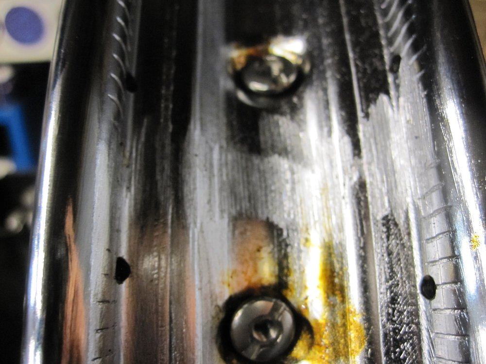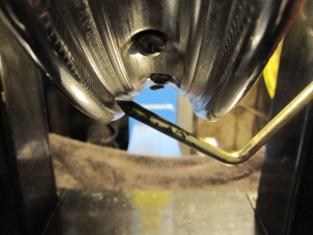 Once you have all your wheel components ready, begin loading the “inside” spokes in every other hole in both of the hub flanges, from the outside. I have found that it is easy to tell where the spokes should go based on witness marks in the hub. It is usually very apparent where the old spokes were, making it easy to put the new ones in the correct holes. If the spoke location and direction is unclear, reference your service manual and the photos you took earlier. Now your hub will be loaded with half of the pile of spokes you started with.