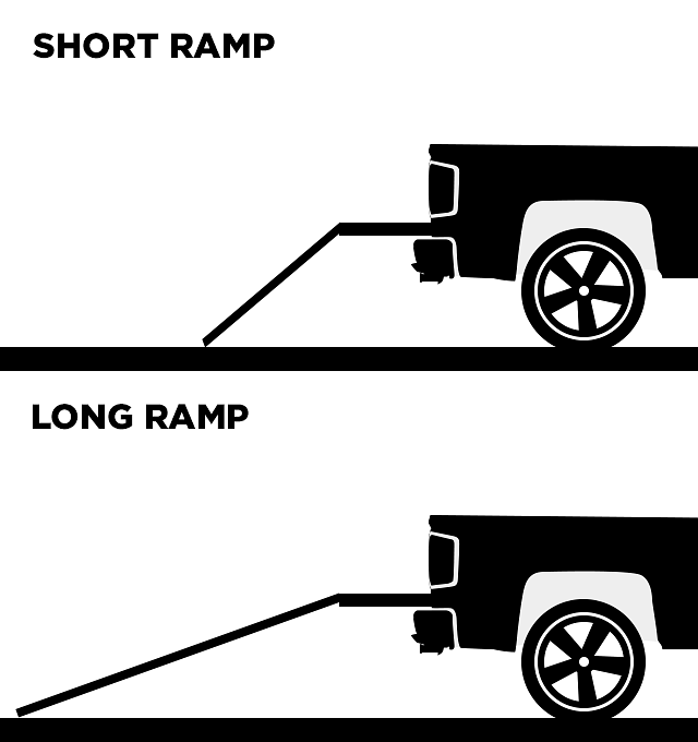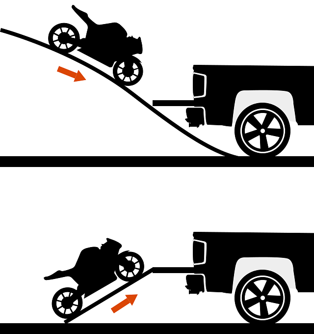 The ramp: There are all sorts of ramps on the market. I think arched ramps have a lot going for them as they really help mitigate the effects of breakover angle. Effectively, an arched ramp breaks one fairly sharp angle into multiple smaller angles. What does this do for you? It reduces the likelihood of "hanging" your bike on a low-hanging frame, fairing, or exhaust.