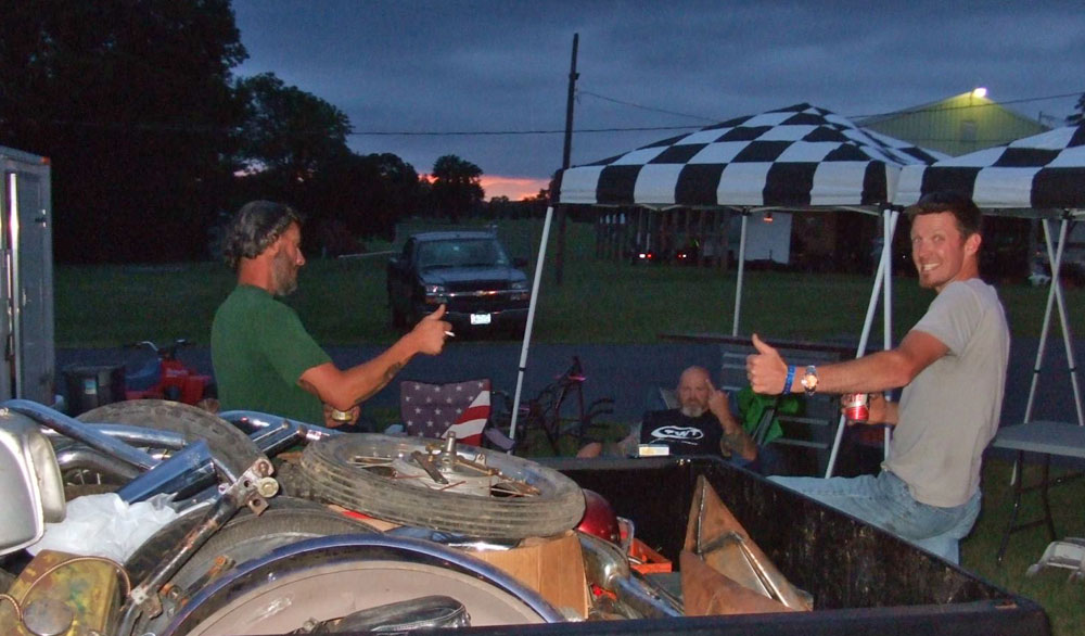 Stay comfy. If you’re traveling far to a swap and you’ll be living out of your truck for a few days, try to make it easy on yourself. I bring stuff to make breakfast and hot coffee in the mornings. Mike C., our Merch Specialist, who is also interested in older junk, always brings his “Gentleman’s Walking Powder” (Gold Bond). I also like to bring my kid’s minibike, too. We both have fun riding it around!