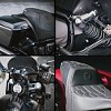 The most notable among them are the rigid saddlebags. Though the new panniers are lockable, weatherproof, and offer more than 10 gallons of storage, they aren’t quickly detachable. Tucked under those bags are a set of Fox piggyback shocks, which are adjustable for compression and rebound damping.