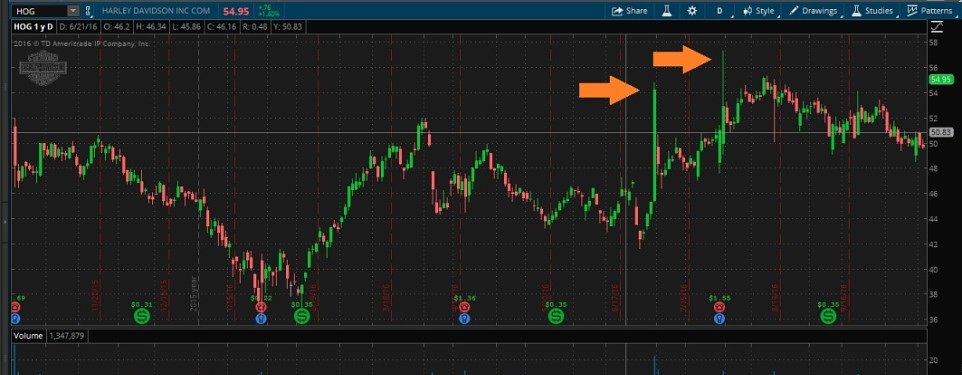 “HOG has much balance sheet leverage, 77.75 percent last quarter,” Tom said. “This means an LBO by a firm such as KKR, or anyone else, could prove difficult because there is not much room for increased leverage for a leveraged buyout.”