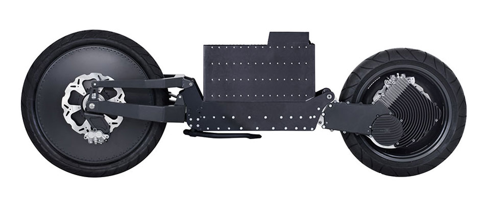 Lithium-ion battery supplies the power. Suspension is also unconventional.