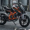 The KTM 390 Duke staged in an urban location.
