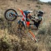 An 890 Adventure R rider hucks a wheelie off-road.