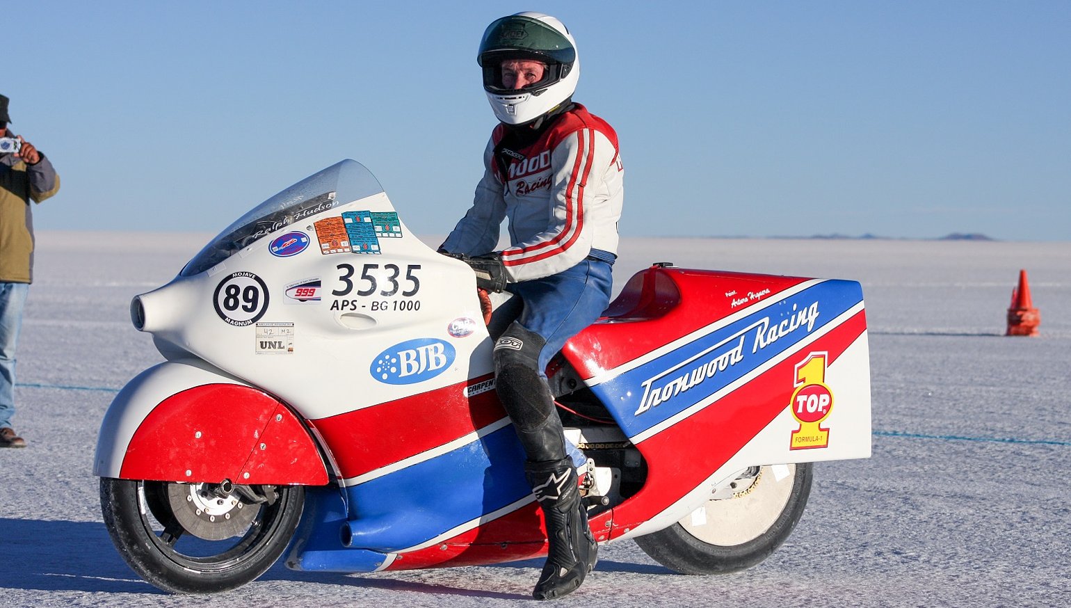 The salt is a fickle mistress. That year, he managed a one-way pass at a measured 304 miles per hour, but couldn’t back it up with a return pass for an official record. Still, his legit 304 time slip made him at least arguably the fastest person ever on a motorcycle (as opposed to in a streamliner).
