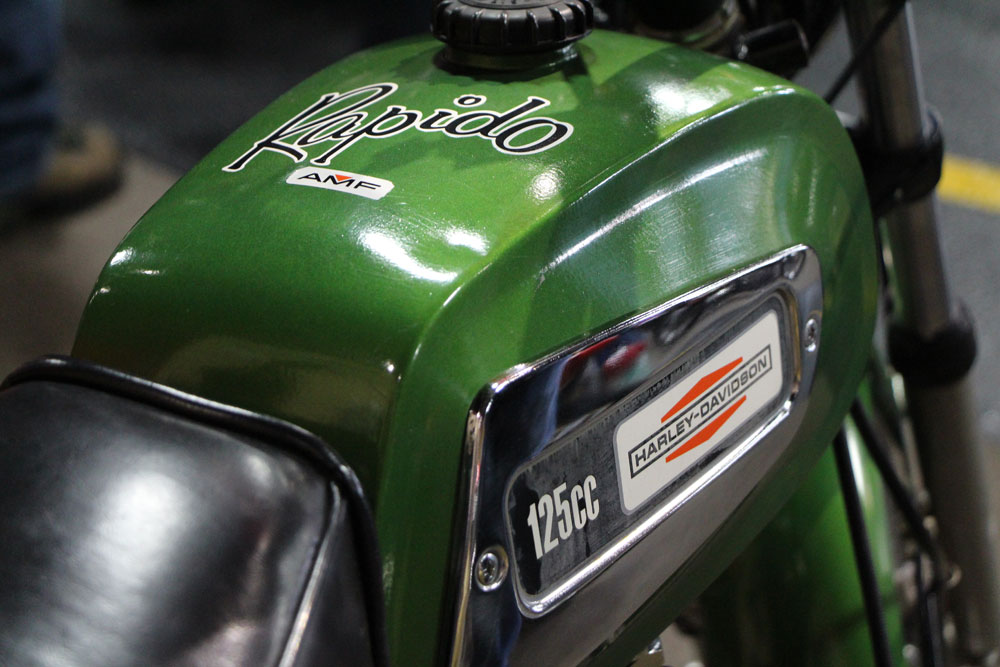 This year’s show celebrated the machines developed thanks to Degner’s monumental act of treason. From the late 1960s to the mid-1980s, some of the meanest bikes on the road were propelled by two-stroke powerplants and two-strokes ruled Grand Prix racing until they were legislated away in the 21st century. Even Harley-Davidson released a series of small two-stroke bikes through its Italian partnership with Aermacchi.