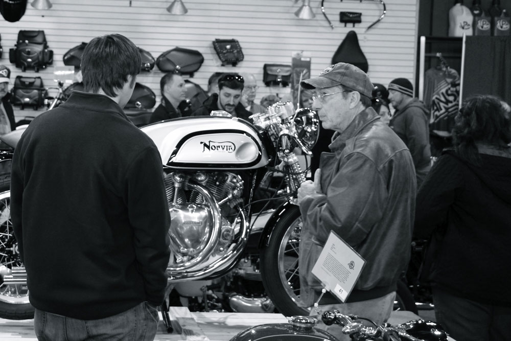 I smiled as I watched an elderly man in a World War II baseball cap explain how an Amal carburetor works to a young kid with a shaggy beard, perhaps because it reminded me so much of myself at Kuhns Garage. Any other day of the week, these are just ordinary guys with a few old bikes in the garage. But at these events, they are the stars of the show.