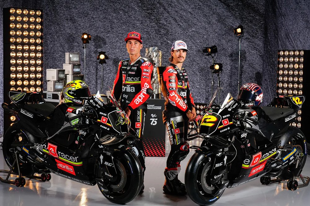 Aprilia’s La Perla Nera (Black Pearl) livery calls back to Max Biaggi’s 250 cc titles in 1994, 1995, and 1996. Sometimes (OK, most times), black is best. MotoGP photo.