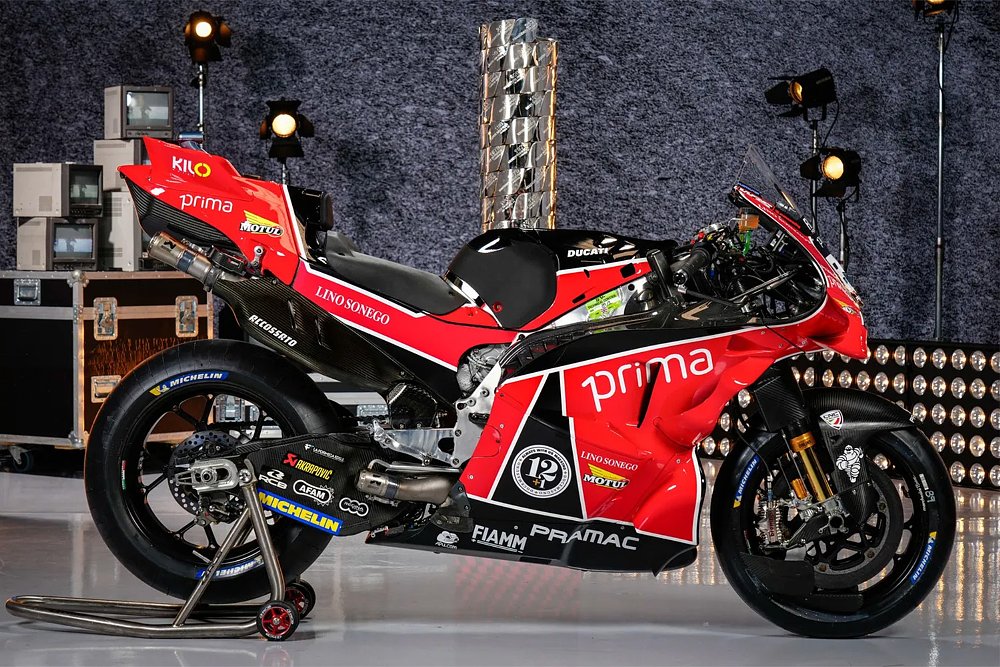Prima Pramac’s black and red wrap references Garelli GP bikes ridden by legendary Spanish racer Ángel Nieto. MotoGP photo.