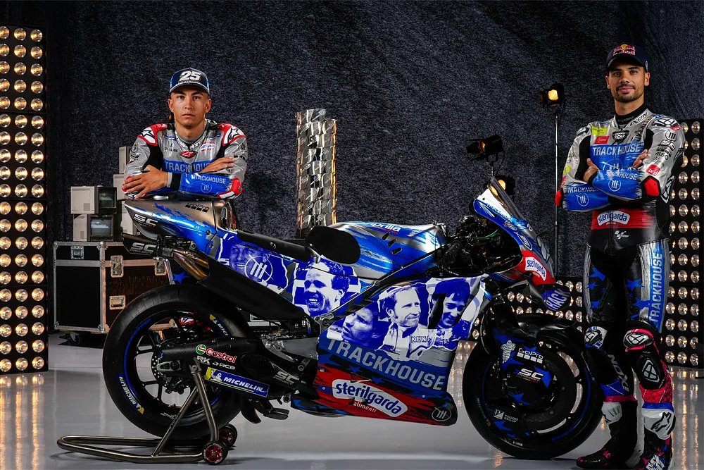 Trackhouse Racing, the only U.S. team on the grid, salutes American icons of the sport, including Freddie Spencer, Kenny Roberts, Wayne Rainey, Kevin Schwantz, and Nicky Hayden. MotoGP photo.