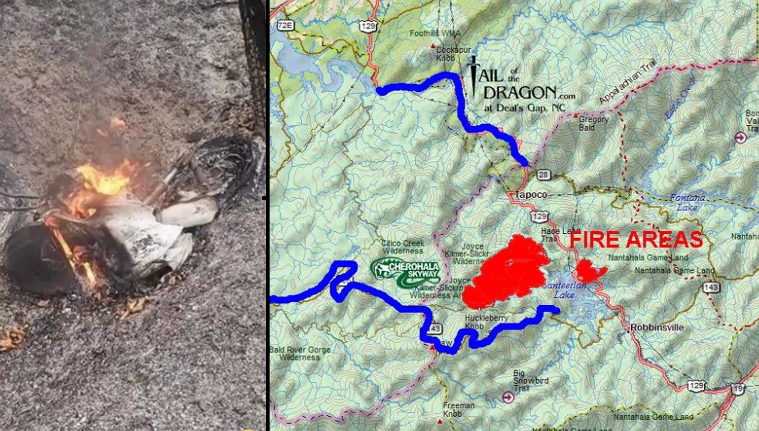 Last week, a crashed motorcycle caught fire and ignited leaves and trees along U.S. 129 near Deals Gap, North Carolina and the Tennessee border — the infamous “Tail of the Dragon” that's beloved by motorcyclists and sports car enthusiasts for its challenging twists and turns.