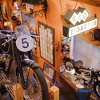 Motorcycle museums usually display bikes by lining them up in a white room and placing placards by the front tires. That’s not the Nettesheim way. Peter has individualized lighting and period-correct accoutrements for almost every display, be it old signage or an ultra-rare factory option. He also has a unique agreement with BMW: They can borrow his historic motorcycles at no charge, but when they are returned, Peter gets to keep BMW’s informational displays to place behind the bikes in his museum. Modern graphics are balanced by the warm lighting and motorcycling artifacts carefully situated in every room. At the bar, beer flows from a repurposed boxer engine with (you guessed it) a tap on each cylinder.