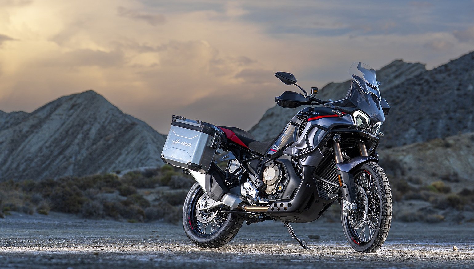 First up is an Italian adventure-touring motorcycle with all the features. And it's not a Ducati DesertX.