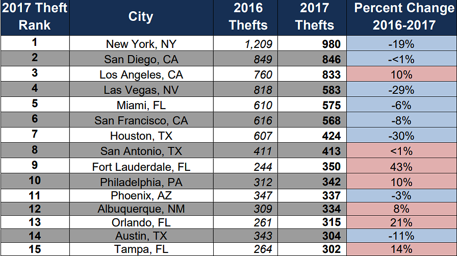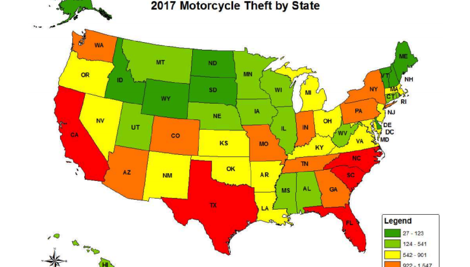 Keep in mind, all these figures are for reported thefts. Many stolen motorcycles go unreported for various reasons.