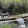 As the snake of blacktop coiled more tightly into the foothills and the surface decayed, Sally the Rally came into its own. When the road finally turned to rough dirt, topped with gravel and powdery sand, the bike was truly in its element. The water bars, about a yard tall, that run across the road are tempting but dangerous on full-size street bikes — sirens calling ADV riders to smash their hulls upon the rocks.