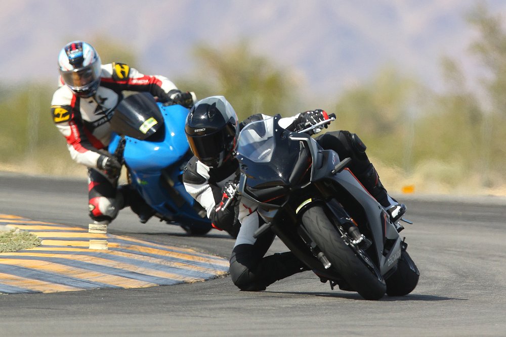 No engine gets very far without a chassis. So, what are we working with here? It’s pretty simple. The twin-spar frame is constructed from steel. The 41 mm fork and monoshock hail from Showa. Nissin provides the stopping power and the Y-spoke wheels roll on Dunlop Sportmax D214 tires. Capeesh? Those armaments are more than enough firepower for canyon riding, but on a high-momentum circuit like California’s Chuckwalla Valley Raceway, it’s easy to spot where the CBR650R excels and falls short. So, that's where I took it.