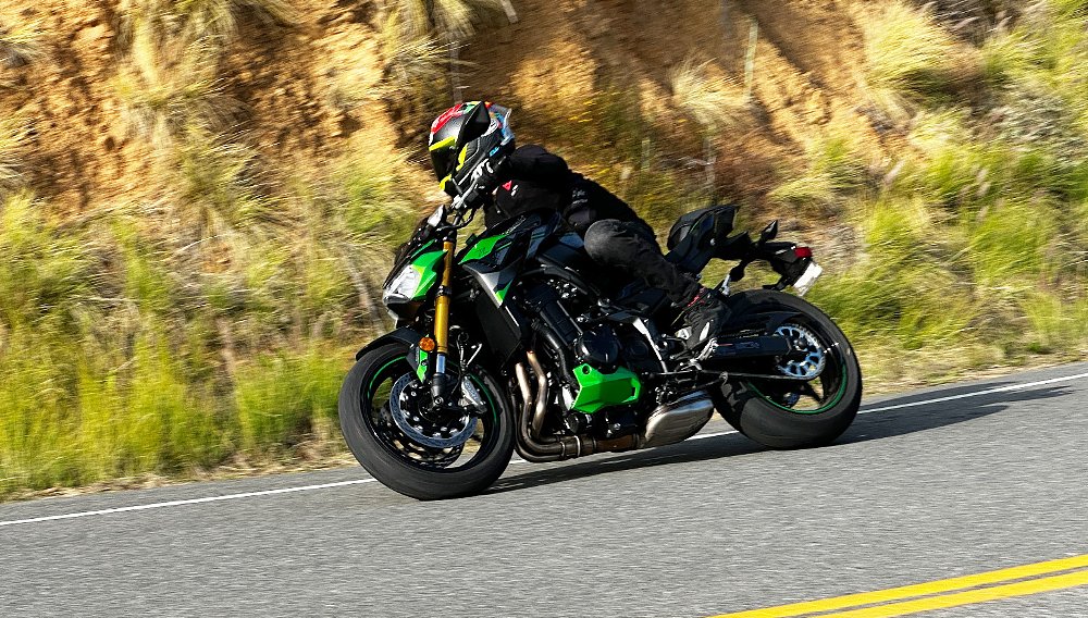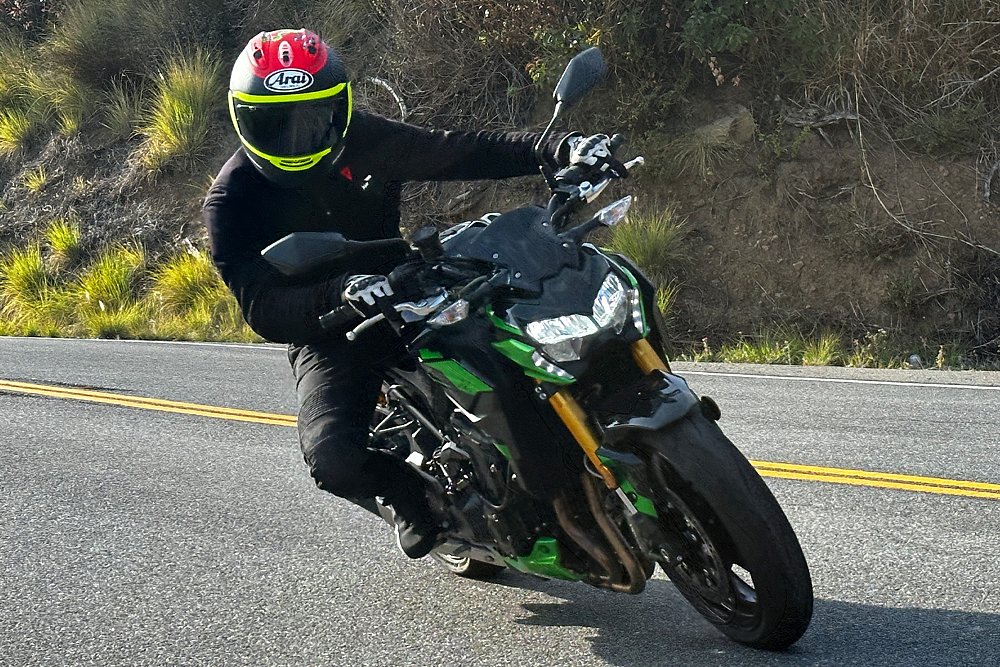 Kawasaki lists the 2023 Z900 SE’s wet weight at 470 pounds. That’s roughly 50 pounds more than the Yamaha MT-09 SP and nearly 70 pounds over a fully-fueled KTM 890 Duke R. Skeptics could argue that the model’s true rival is the 472-pound MT-10 SP, but they’d have to ignore the Z900 SE's 125-horsepower rating (claimed) and $10,899 MSRP ($11,400 in 2024) to do so. Both metrics place the Z squarely in the 900 cc naked class, so I’ll treat it as such. That puts the green machine on its back foot in the weight department, but the bike’s handling is not what its heft would have you expect.