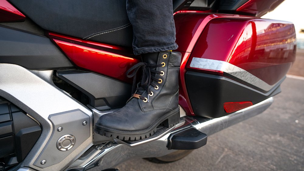 With regard to feeling safe on the back of a bike, the Gold Wing’s passenger foot rests reign supreme. Other motorcycles I’ve ridden — even some touring bikes — tend to approach passenger foot pegs as an afterthought. It seems like motorcycle designers are more concerned with the extra narrow pegs being out of the way than for the comfort of the passenger. Honda's passenger floorboards, however, allow you to securely rest your entire boot. Sudden changes of direction or speed that might typically throw off your center of gravity are easily combated on the Gold Wing due to the wider surface area for foot placement.