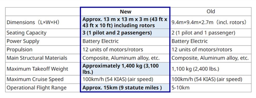SkyDrive conducted the first manned flights of its SD-03 prototype in 2020. The firm’s SD-05 concept debuted less than two years later, adding passenger accommodations to the design. SkyDrive’s latest eVTOL not only updates the model’s technical specifications but also includes room for three occupants.