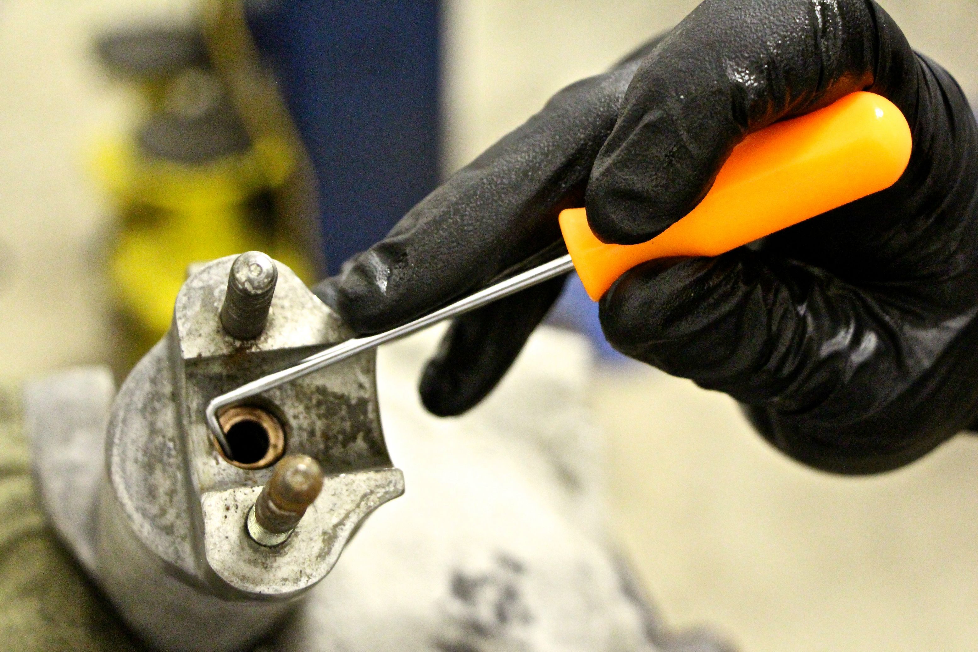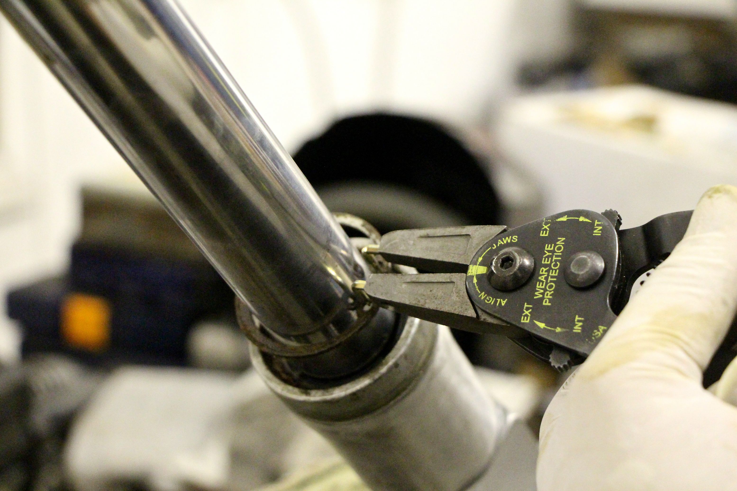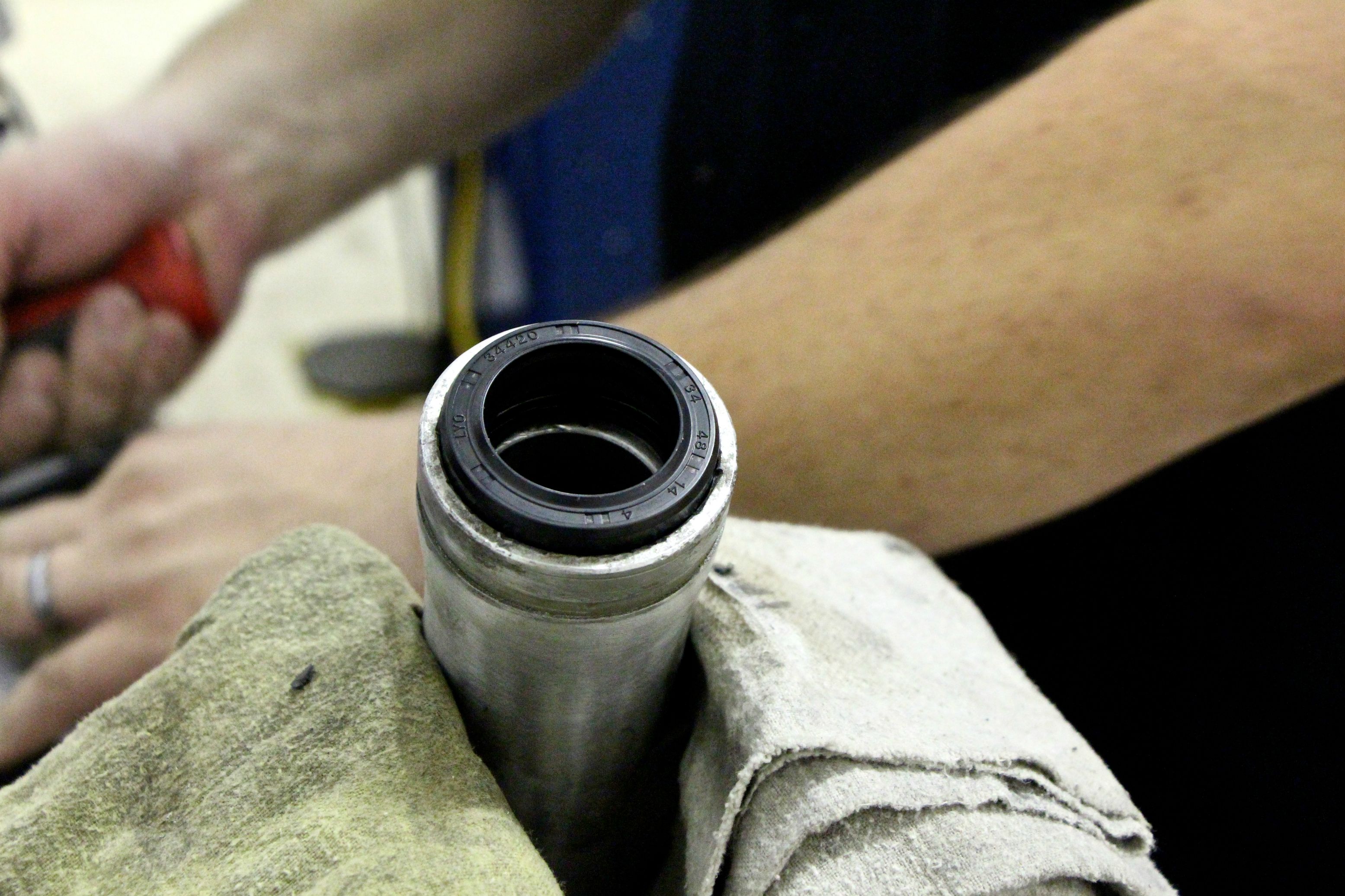 Remove the old seal. I don't love seal pullers for this. The "claws" have really chewed on some of these that I have done in the past. I use a small flathead screwdriver and crush the sides in. It leaves only tiny nicking inside the tube, which I clean up with some crocus cloth. You'd have to really go crazy to get a nick so big you'd leak there. Don't pry like a gorilla! The lower is made of cast aluminum. You can probably break it if you are being a moron. This is not the most correct way to do this, but when the “by-the-book” way leaves something to be desired, I re-engineer it.