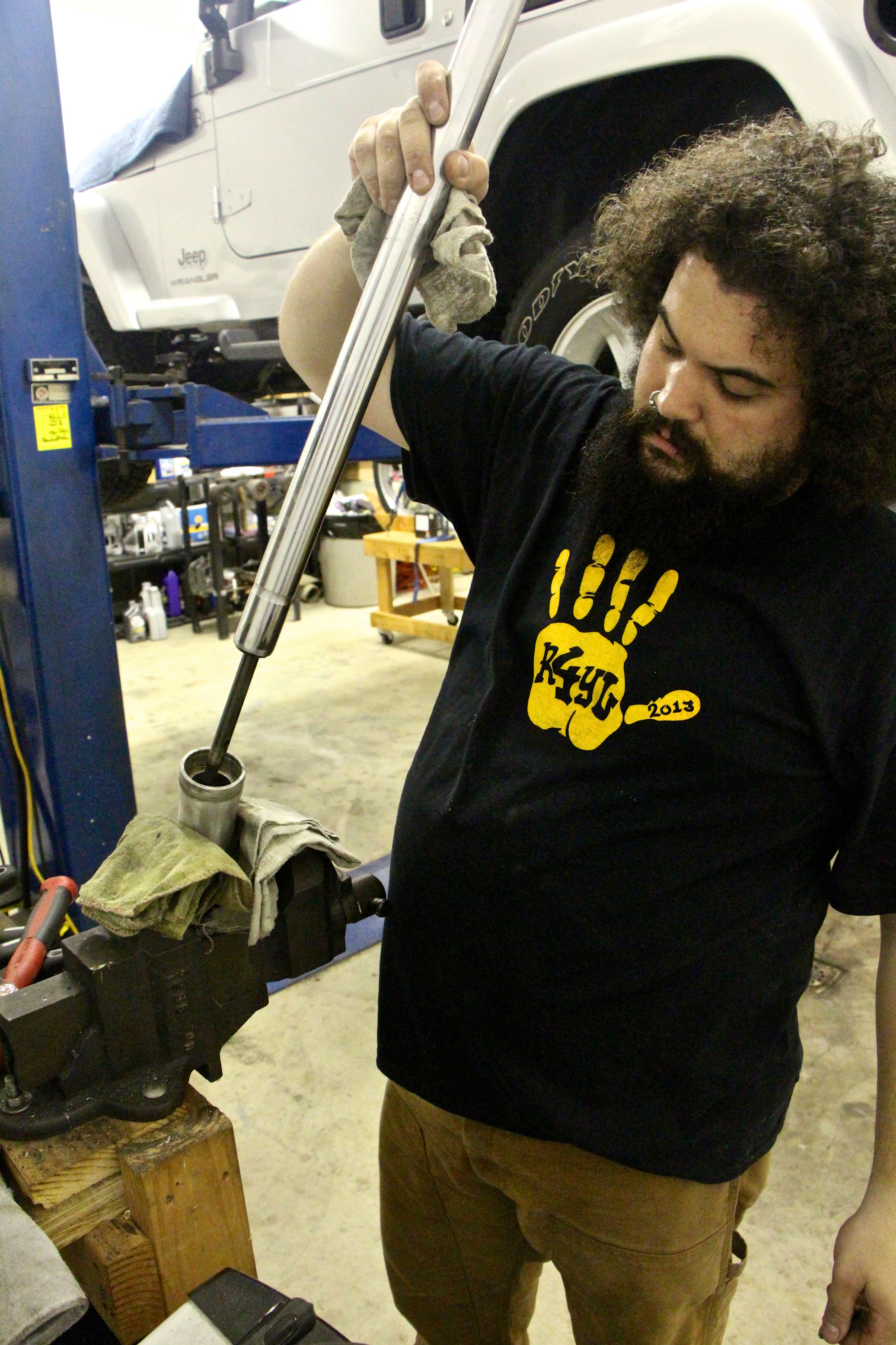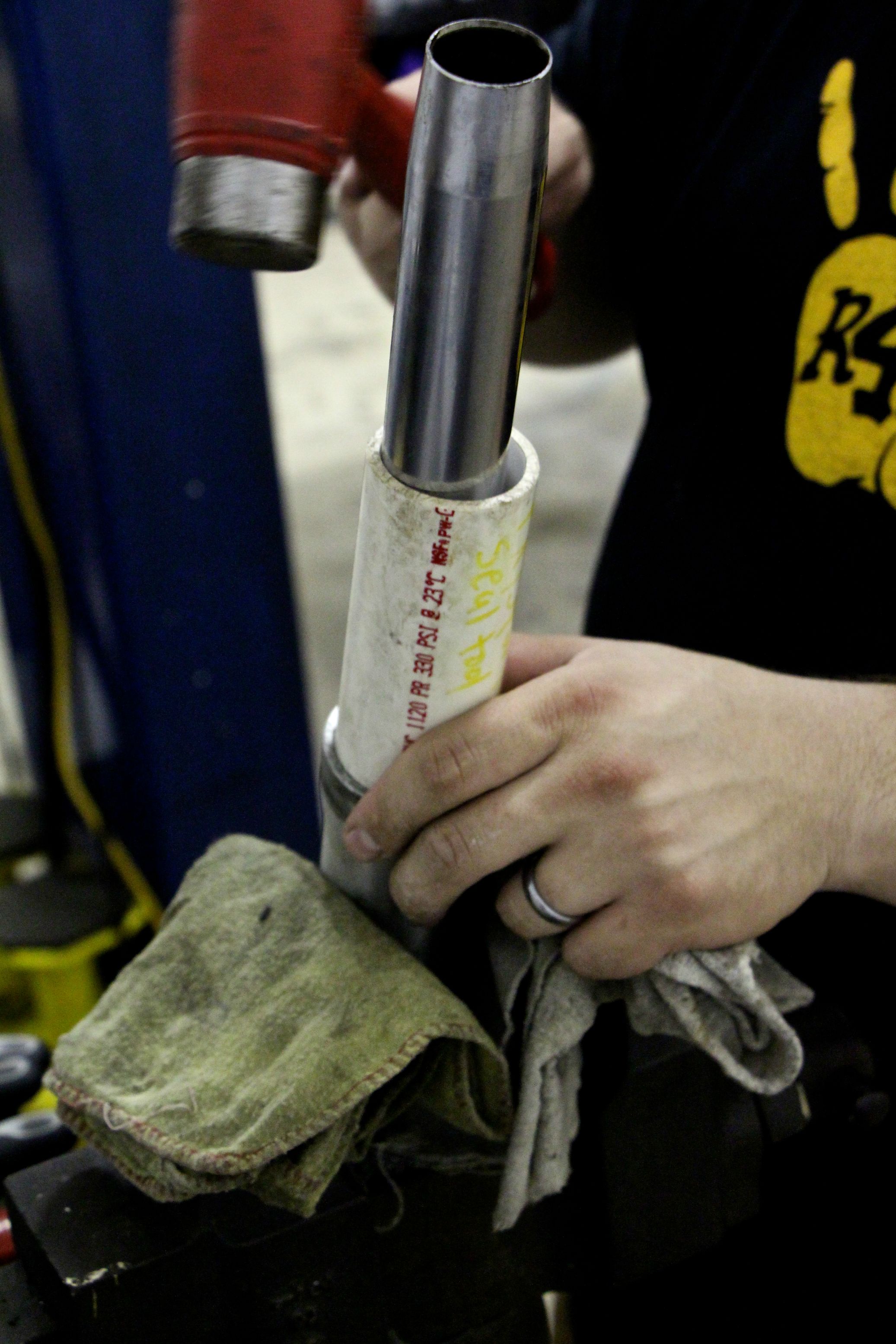 I like to put the fork legs in a vice when working on them. I wrap a rag around the leg to keep anything from getting nicked and scratched. Everything we do from here on out is the same for both fork legs, so we are just going to show you one.