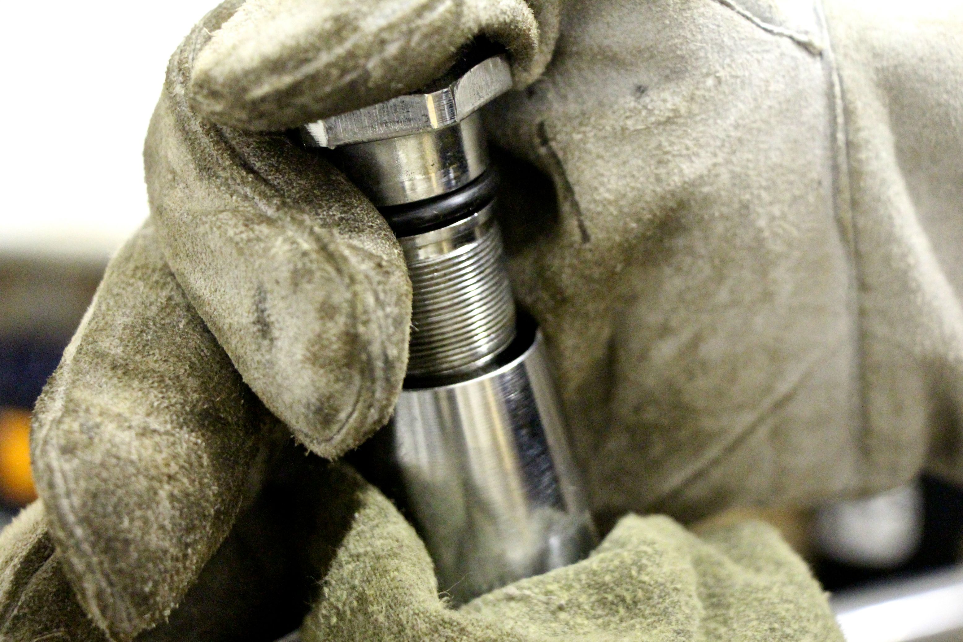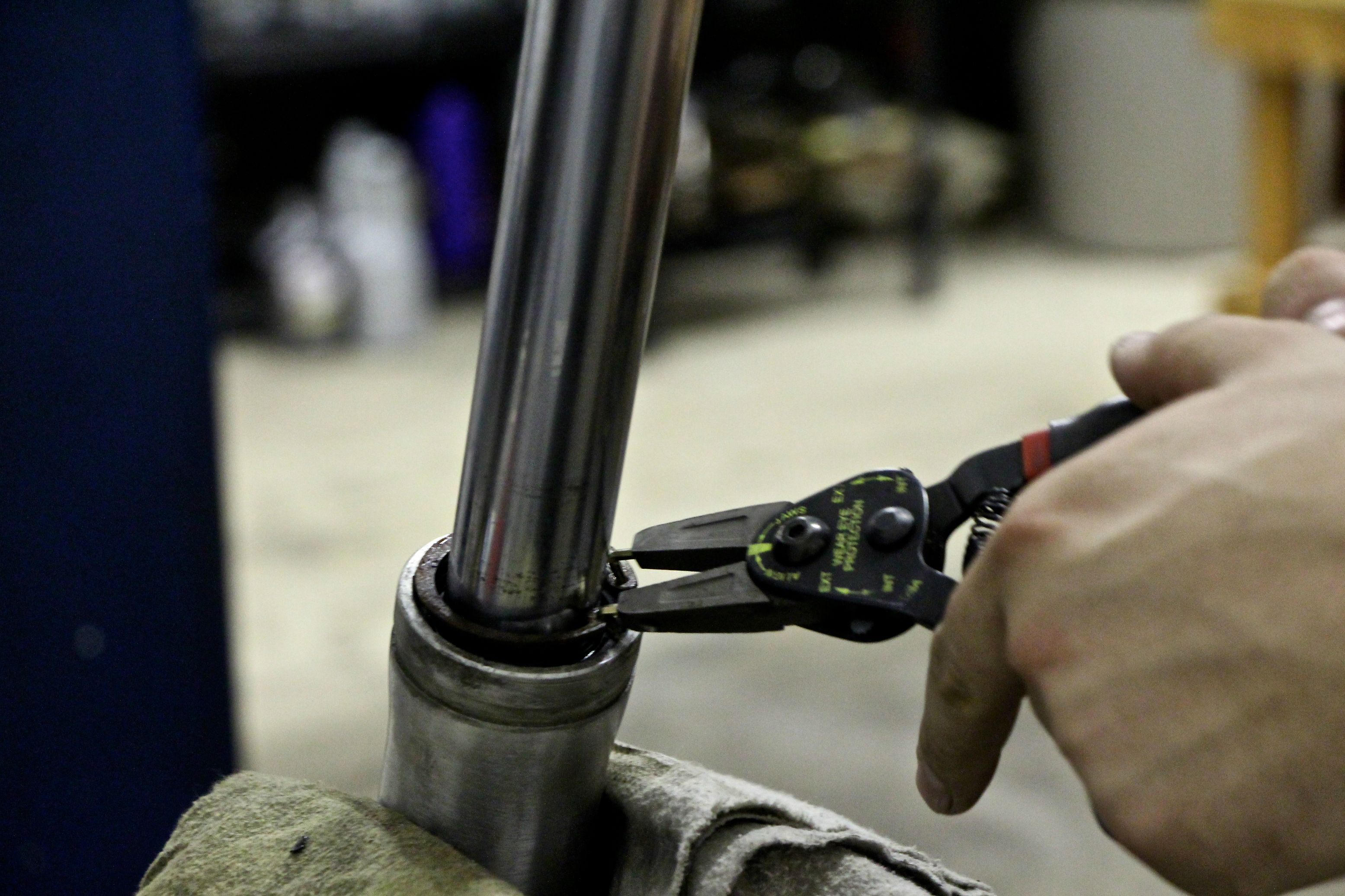 To reinstall the caps, extend the fork as far as you can, and put on a pair of leather gloves. If you combine moderate downward pressure with a twisting motion, you can probably start the fork caps by hand if you have a little “gorilla” in you.