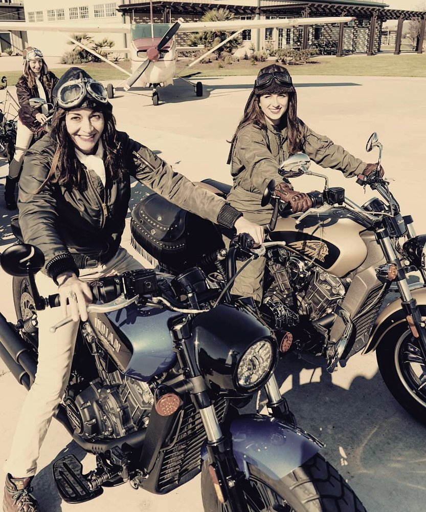 DJ: I wanted an underlying theme for RTW that would convey courage, bravery, and freedom. Amelia Earhart is a personal hero of mine. I look back on the tremendous amount of courage it would take to climb into those airplanes of yesteryear and to fly the skies while breaking records and it’s just so inspiring. The suggested dress code for RTW events is aviator themed and I like that this theme also includes a lot of opportunity for expression and protection — tall leather boots, a jacket, helmet and silk neck scarf can all be incorporated into a riding wardrobe safely and according to rider taste. RTW riders are also given a turquoise feather to add to their handlebars in solidarity with the ride. The turquoise color symbolizes protection and the feather represents freedom.