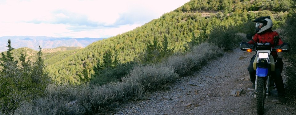 We were up at the crack of 10 a.m., loading our bikes and casually munching cereal. An unrushed hour later, Justin and I were enroute to our first Arizona adventure since the Apache Trail. You can see it from the highway for miles. The lookout tower, looming over the narrow valleys, sits atop Mount Ord waiting for us, beckoning adversaries to climb to its 7,000-foot peak. That altitude might not be much for some, but for our factory-jetted Yamaha XT225s, it was a struggle. Slow and steady and still we made good time. On a Friday afternoon in the middle of October, you can find the hard-packed gravel road to the summit from the south lined with pickup trucks and camouflage. It's hunting season. Perhaps the only dangers we’d have to avoid that day would be getting hit by a stray bullet? The passage began ascending so evenly that our only true obstacles were the clamor of four-wheeled vehicles traversing the one (and half) lane thoroughfare.