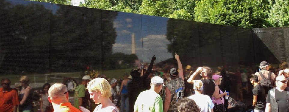 Finally, it was our turn to head out for the parade. We rode on streets packed with folks waving flags, holding signs, pointing cameras or just smiling with joy. This sort of joy just took over my soul. I got very teary-eyed during the entire parade. We were led to a huge grass field with the Washington monument as our backdrop. From there, we decided to walk towards the Vietnam Veterans Memorial.