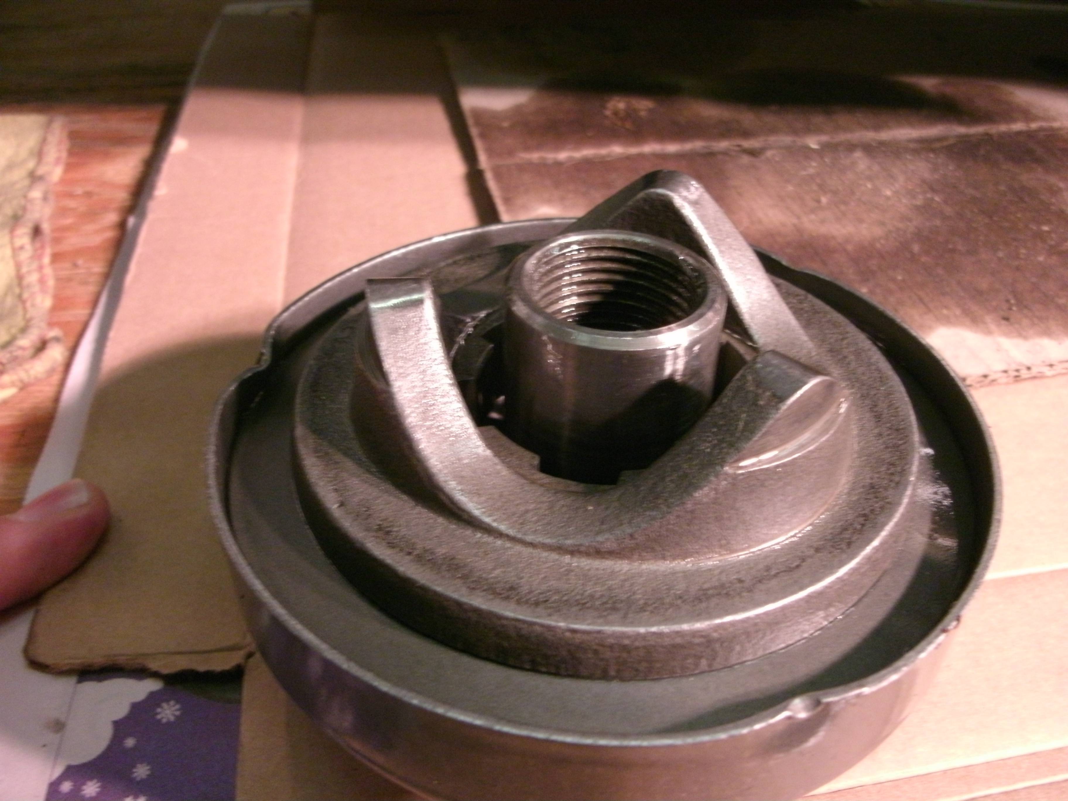 After spraying out all the goop and cleaning up the resulting Valdez-level spill, I was looking at the insides of a pretty nice-looking primary, with lots of life left on the adjuster shoe.