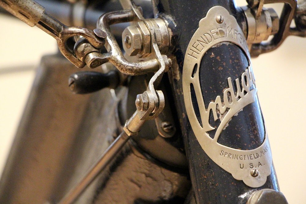 Before I went to go see the exhibit, I did a little homework. Indians are not my area of strength. I like them, and I know a bit about their history, but they're so godawful rare that I have no practical experience with them. Still, I find them appealing and their neck-and-neck competition with my beloved Harley-Davidson for the first half of the 20th century piques my interest. The Museum chose to put on this exhibit due to the Swedish roots of one of Indian's founders, Carl Oscar Hedstrom. Hedstrom, a machinist, immigrated from Sweden and met an American racer and bicycle manufacturer named George Hendee. Hedstrom had built a motorized bicycle that impressed Hendee, and the two teamed up, forming the Indian Motocycle Manufacturing Company. The name was chosen to signify the American roots and pioneer spirit imbued in the product. Hedstrom's engineering skill was complemented by Hendee's existing bike production and business acumen.