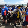 On Sunday, Fong woke up sure he wouldn't be able to race. His left ankle was injured, he suspects he has a fracture in his left foot (pending further medical exams this week) and his back hurt from the pounding he took. But he was cleared to race because he did not suffer a concussion, despite a bump on his forehead, even though he had to hobble to his GSX-R600 on crutches.