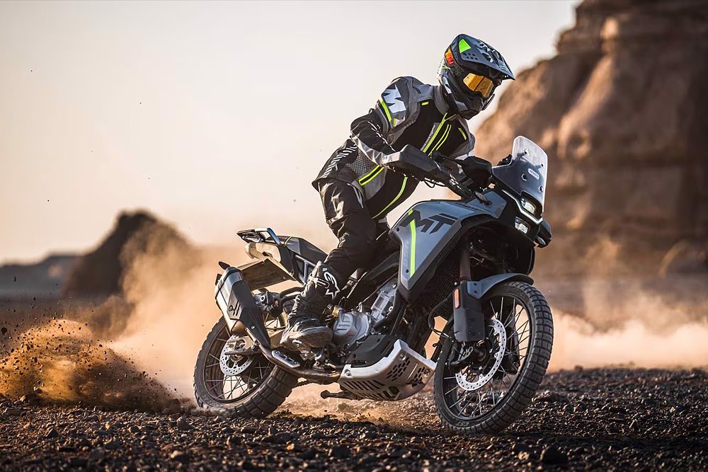 At the other end of the price scale, CFMOTO’s 450MT seeks out the dirt in earnest. Its wire-spoked 21-inch front wheel, 18-inch rear hoop, knobby tires, and 7.9 inches of travel say as much. The 43 horsepower (at 8,500 rpm) and 32.5 foot-pounds of torque (at 6,250 rpm) produced by its 450 cc parallel twin don’t hurt, either, especially for the entry-level category. Unfortunately, the Chinese firm didn’t reveal whether the bike will make it stateside.