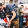 With its impressive 7.5-gallon tank, we calculated that the Concours would need fuel at around 300 miles, but the needle on the analog gauge was already aimed at the big E well before our first planned fuel rendezvous. Maybe the 40,000 miles on the Kawi’s odometer had been hard ones and the rings were worn, making the big C10 especially inefficient? We hadn’t done much to the bike other than confirm that it started, so anything was possible. Zack felt around for the petcock, preparing for the moment when the torquey inline-four would stumble. Sure enough, it was 20 miles into reserve by the time we rolled up to the Circuit of the Americas outside of Austin, where we planned to use the track’s world-class parking lot for the Connie’s first on-the-fly fillup.