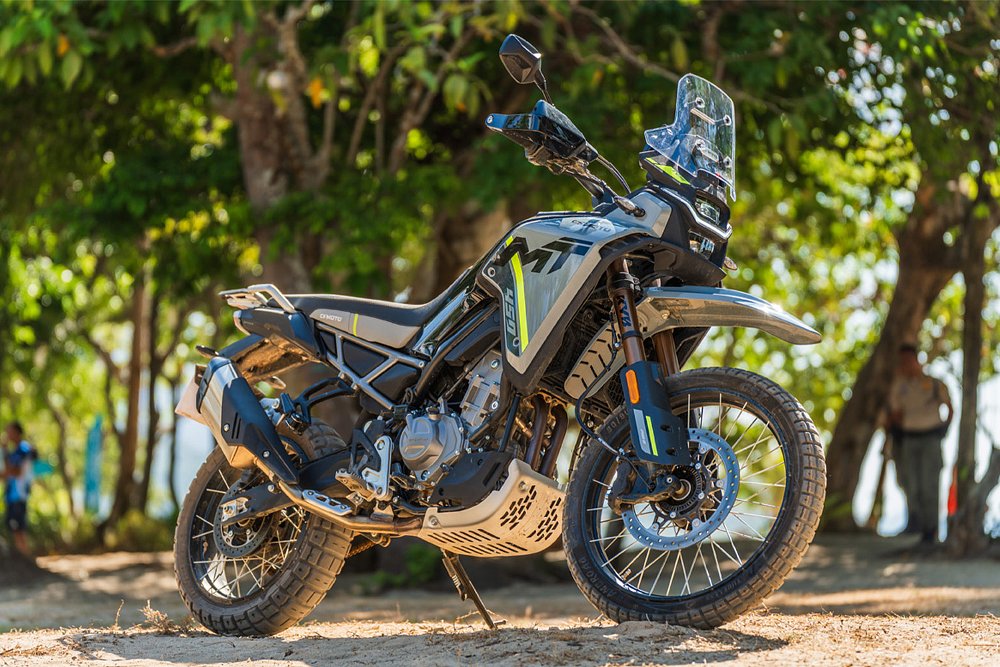 The Ibex 450's alternate linkage mount allows riders to adjust the seat height between 31.5 and 32.4 inches. CFMOTO photo.