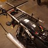 Next, I turned my attention to making sure my girl was comfortable. I normally tow her around in a modified bicycle trailer that I made for my 10-speed, but I wanted to use internal combustion to get us to hiking trails faster and with considerably less effort. I sketched up plans that capitalized on robust frame mounting points to extend a platform off the back of the bike. I went a little overboard with my material spec, but I wanted to be many times safer than sorry.
