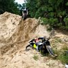 Julien rode ahead to make sure the trail was clear before parking his bike and walking back. We lifted Klaser off the bike and together we carried him on the tight trail through the woods. The sand was so deep it made the going difficult, even on foot. Upon reaching the other side, I hoofed it back to my KTM and rode it through the woods. We continued on our way.
