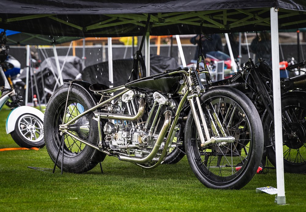 This was probably my favorite bike from the event. It was just so darn pretty. The 1929 Cleveland Tornado was one of two bikes in the world that were guaranteed to be tested at 100 mph. The other being the Brough Superior SS100. I can’t imagine what it must have felt like to hit that mark back in 1929, but you certainly would have looked good doing it! Photo by Nathan May.