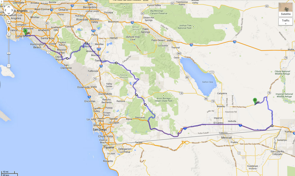 Our route for day 1. Photo by Sean's awesome Google Map skills.