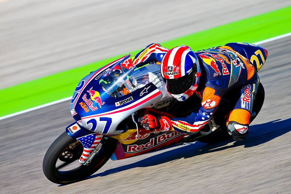 In 2013, he made his AMA Racing debut at Barber Motorsports Park, where he won both AMA Pro SuperSport Races. In his freshman year, he went on to win the five races he contested, claiming two poles. Why'd he wait until the Barber round in mid-season to race? He had to wait until he was 16 and could get his pro license, which he did four days prior to the race. He also participated in the Red Bull MotoGP Rookies Cup, in which he broke the lap record at the Brno Circuit.