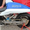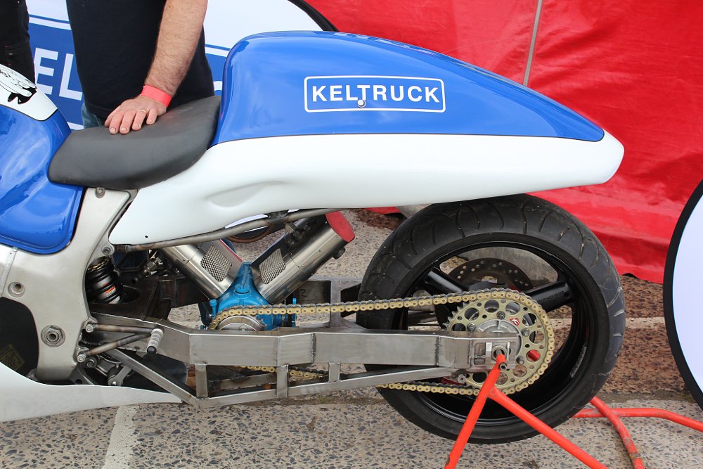 Not much remains of the original Suzuki donor except the front end, the frame, and some bodywork. An extended swingarm keeps the bike stable during high-speed runs. In the engine’s place sits a steam generator, which is controlled and monitored from the electronics up front. Kerosene heats the steam to 950 degrees Fahrenheit, where it produces 2,000 psi used to drive the chain.