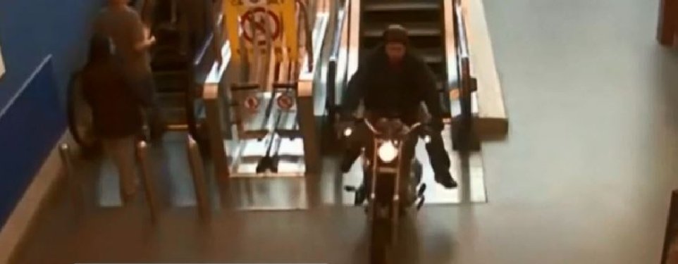 At least now we know that Harleys handle just fine on shopping center escalators.